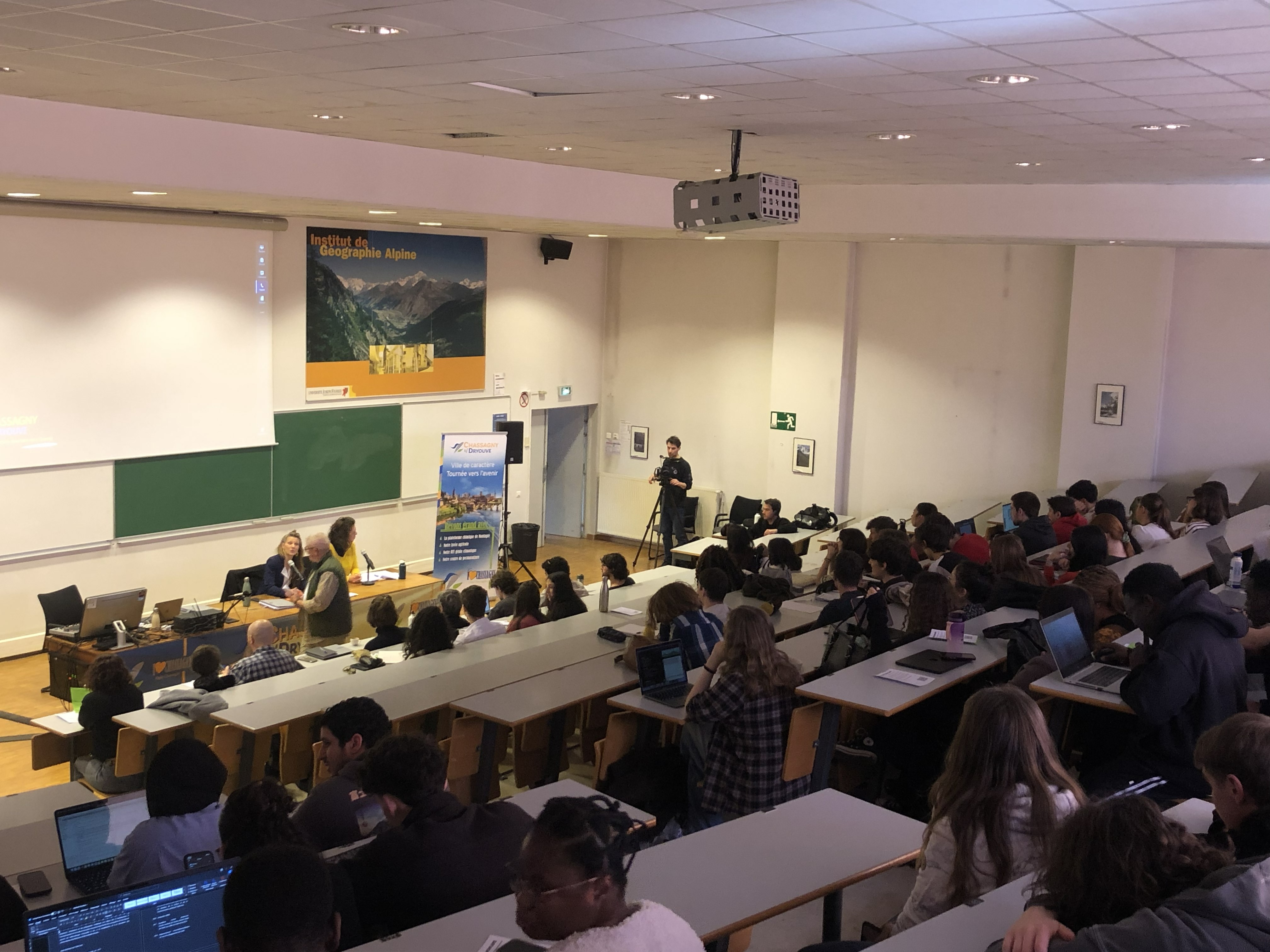 Mercredi 25 février 2026, la compagnie de théâtre Essentiel Ephémère, spécialisée dans la sensibilisation et la prévention aux risques majeurs, a joué la pièce "Cevezol Liquids Inc. - Réunion publique" devant les étudiants de l’Institut d’Urbanisme et de Géographie Alpine, à Grenoble.